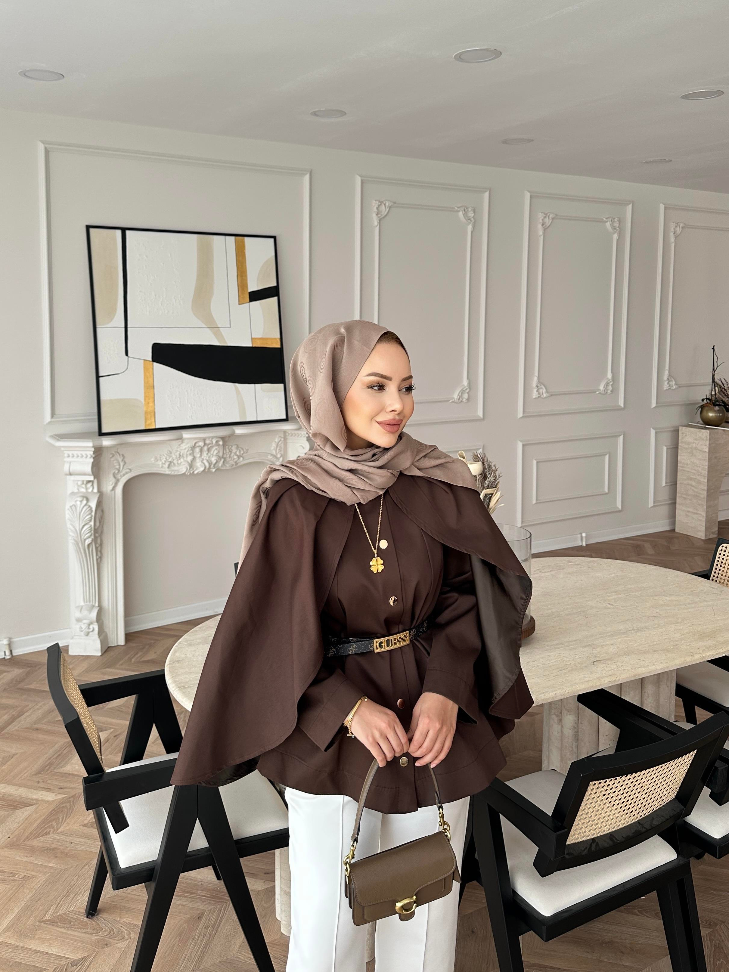 Blur Yarasa Kollu Trençkot Acı Kahve