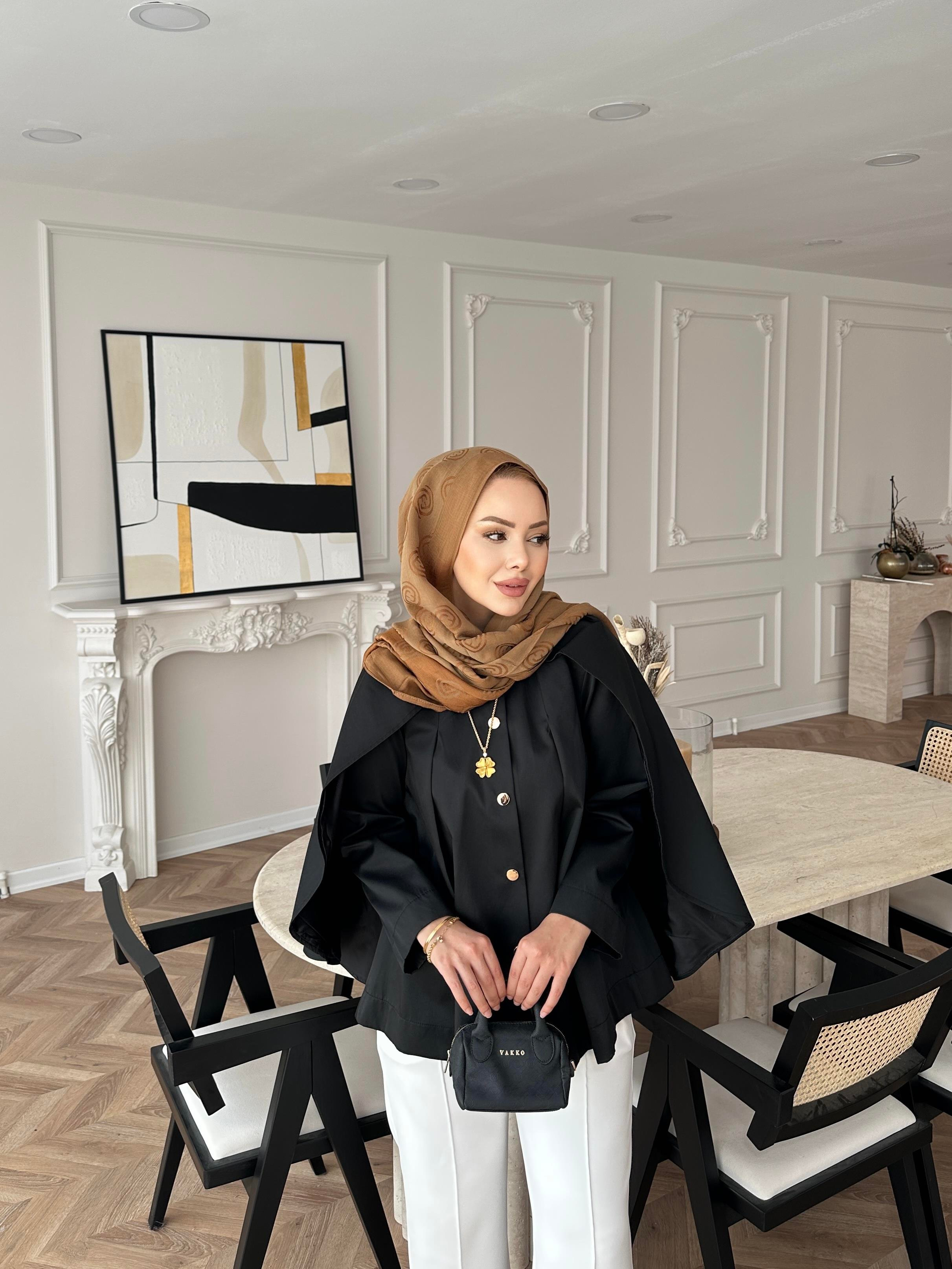 Blur Yarasa Kollu Trençkot Siyah