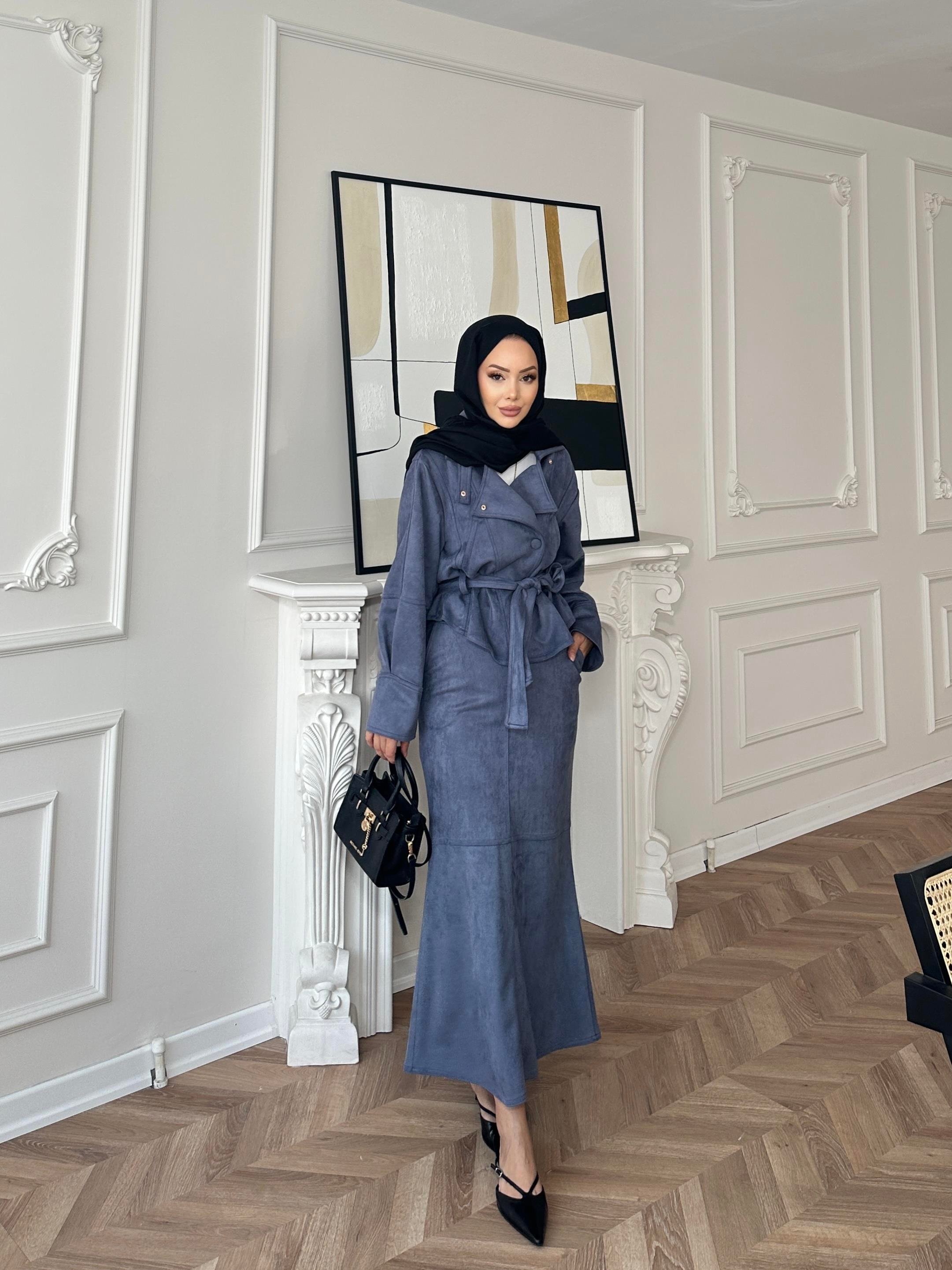 Bomber Ceketli Süet Etekli Takım Mavi