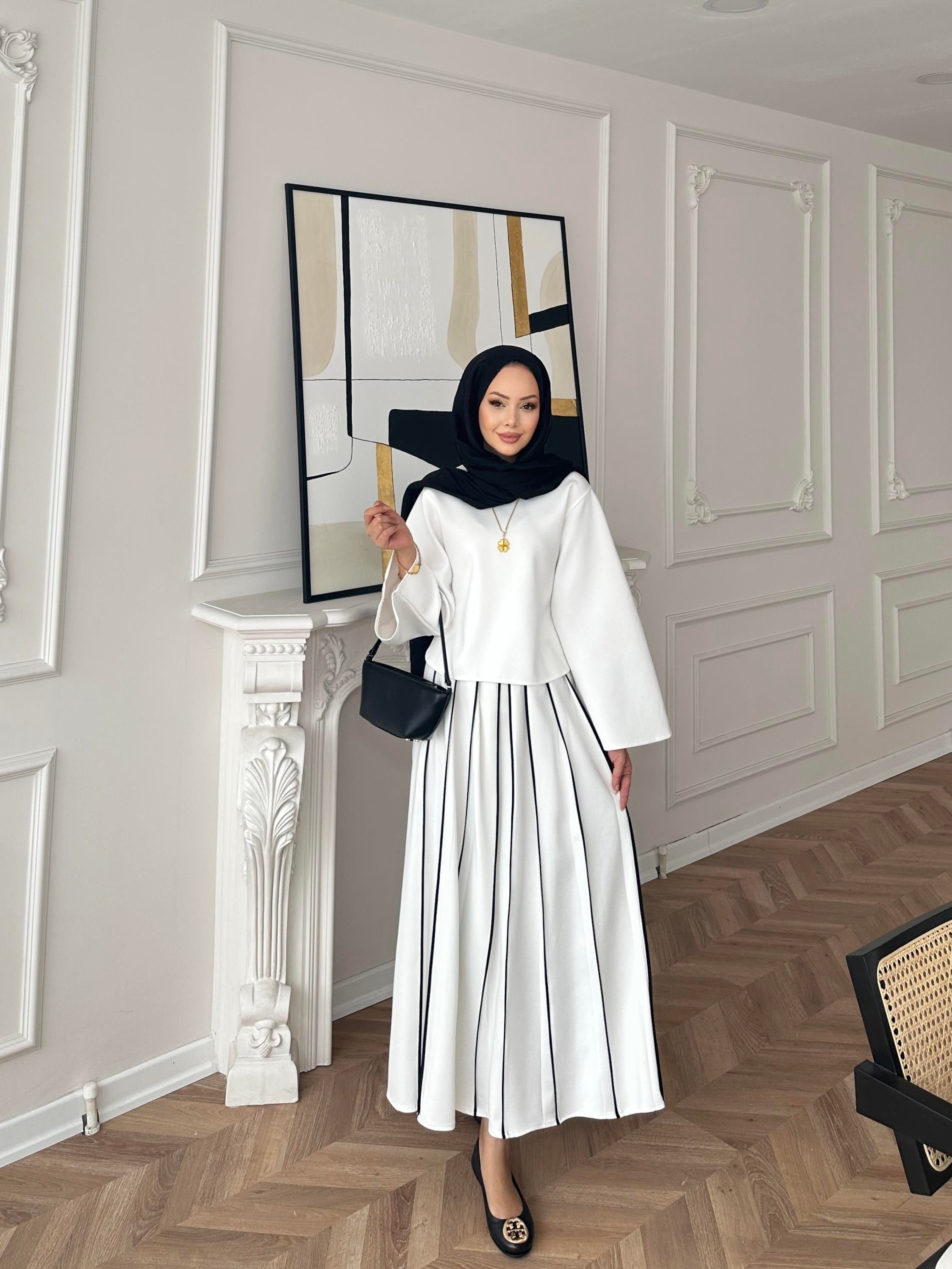 Grayle Biye Detaylı Scuba Etekli Takım Ekru