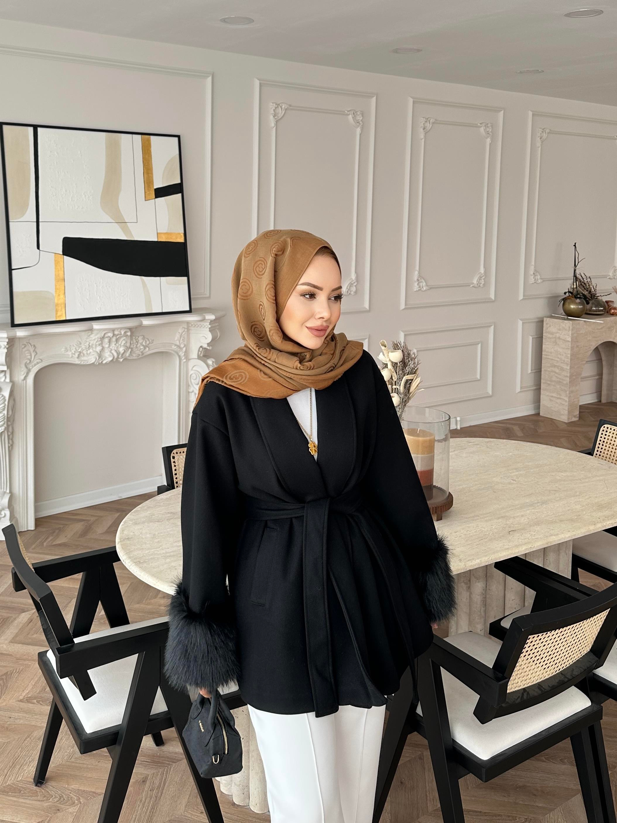 Kürk Kollu Kaşe Kaban Acı Kahve Kürk Kollu Kaşe Kaban Lacivert