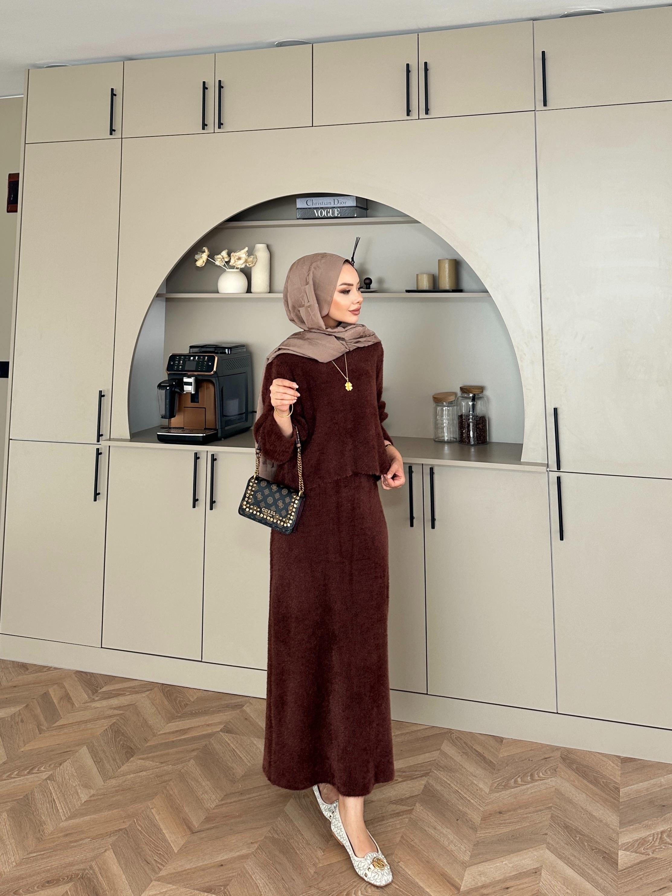 Leah Sakallı Triko Etekli Takım Bordo Leah Sakallı Triko Etekli Takım Siyah