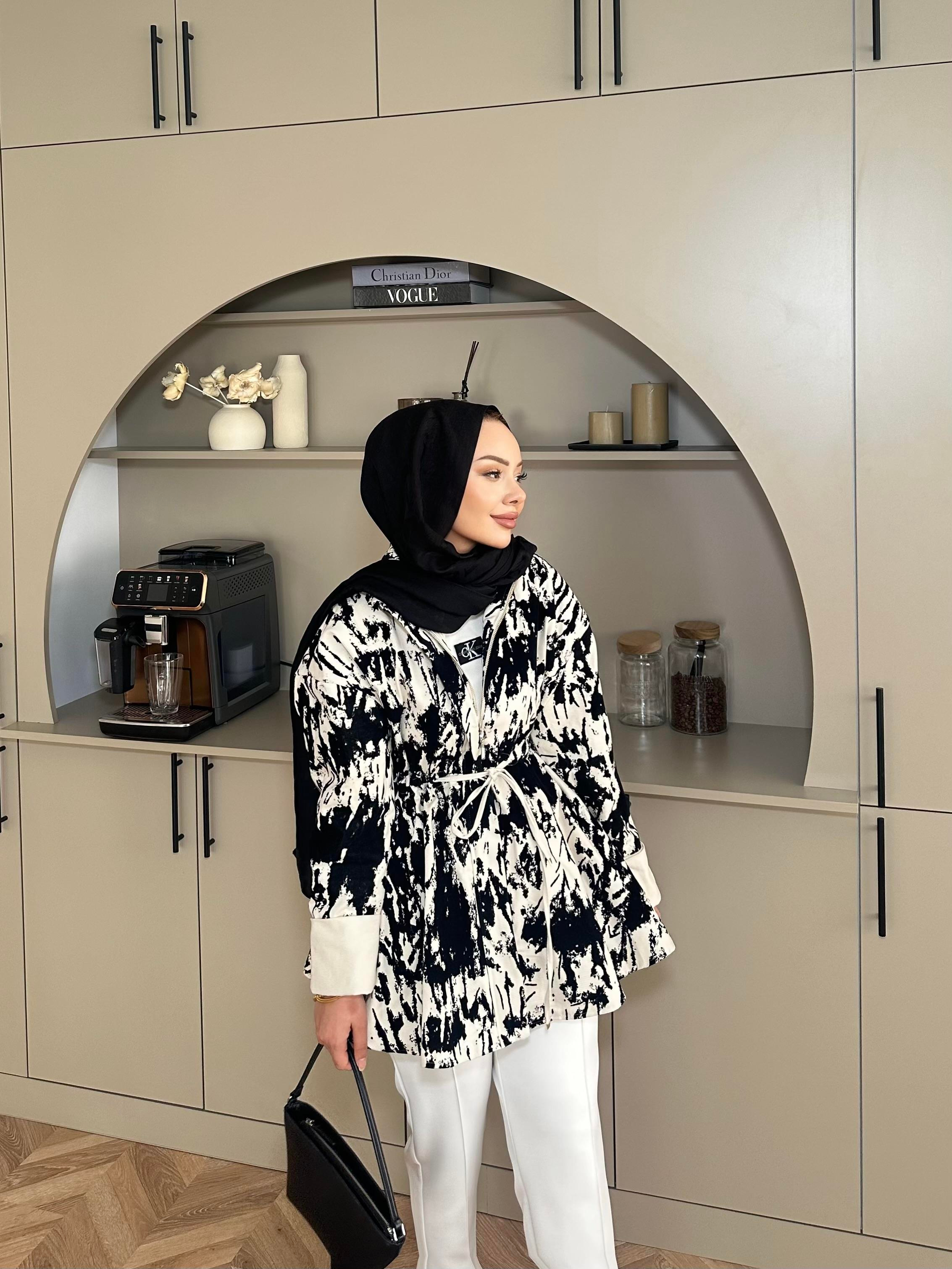 Lima Flok Baskılı Ceket Siyah
