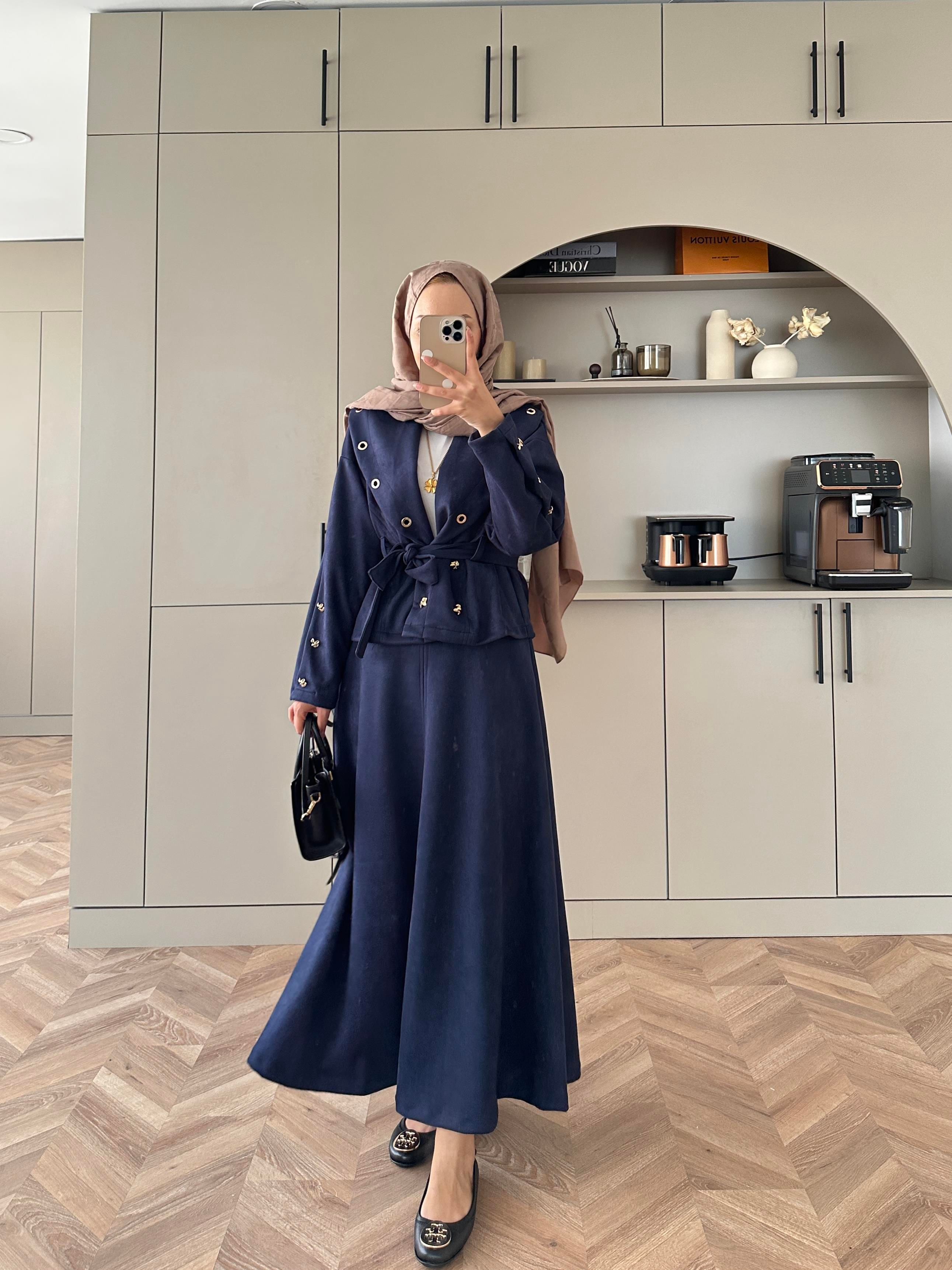 Margret Kadife Etekli Takım Lacivert