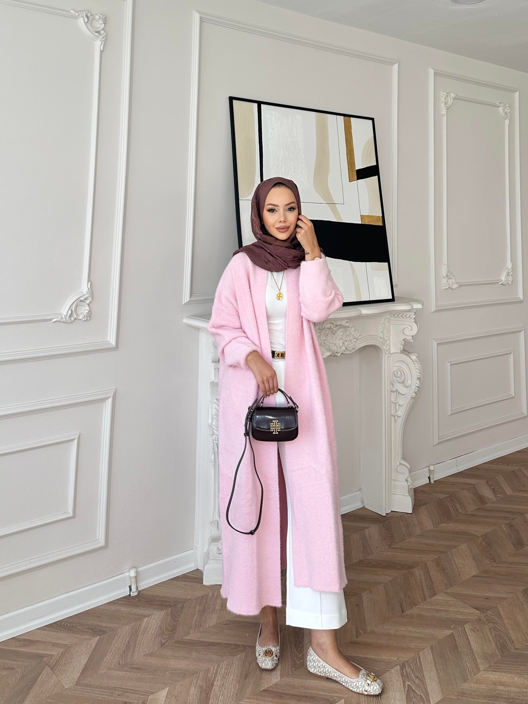 Marsel Angora Uzun Hırka Pembe