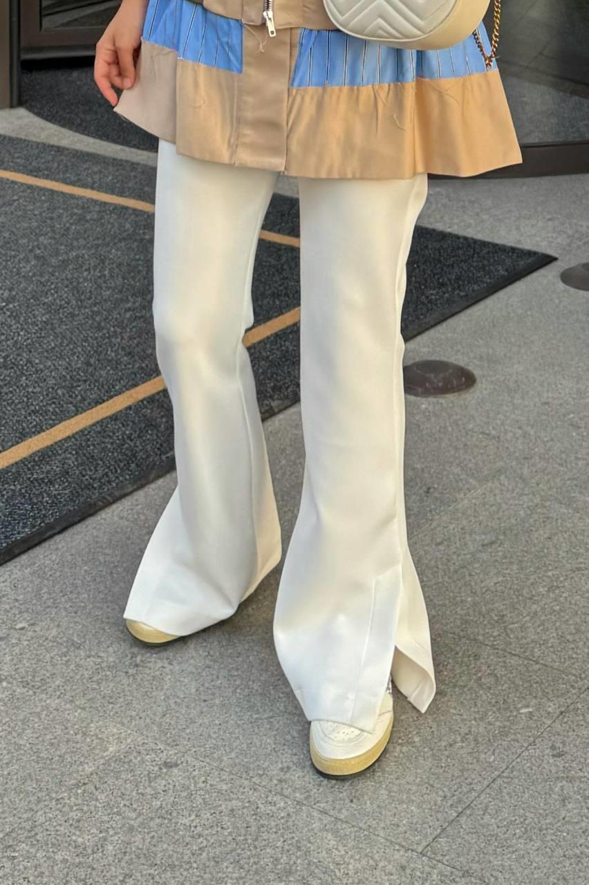 Scuba Yandan Yırtmaçlı Pantolon Beyaz