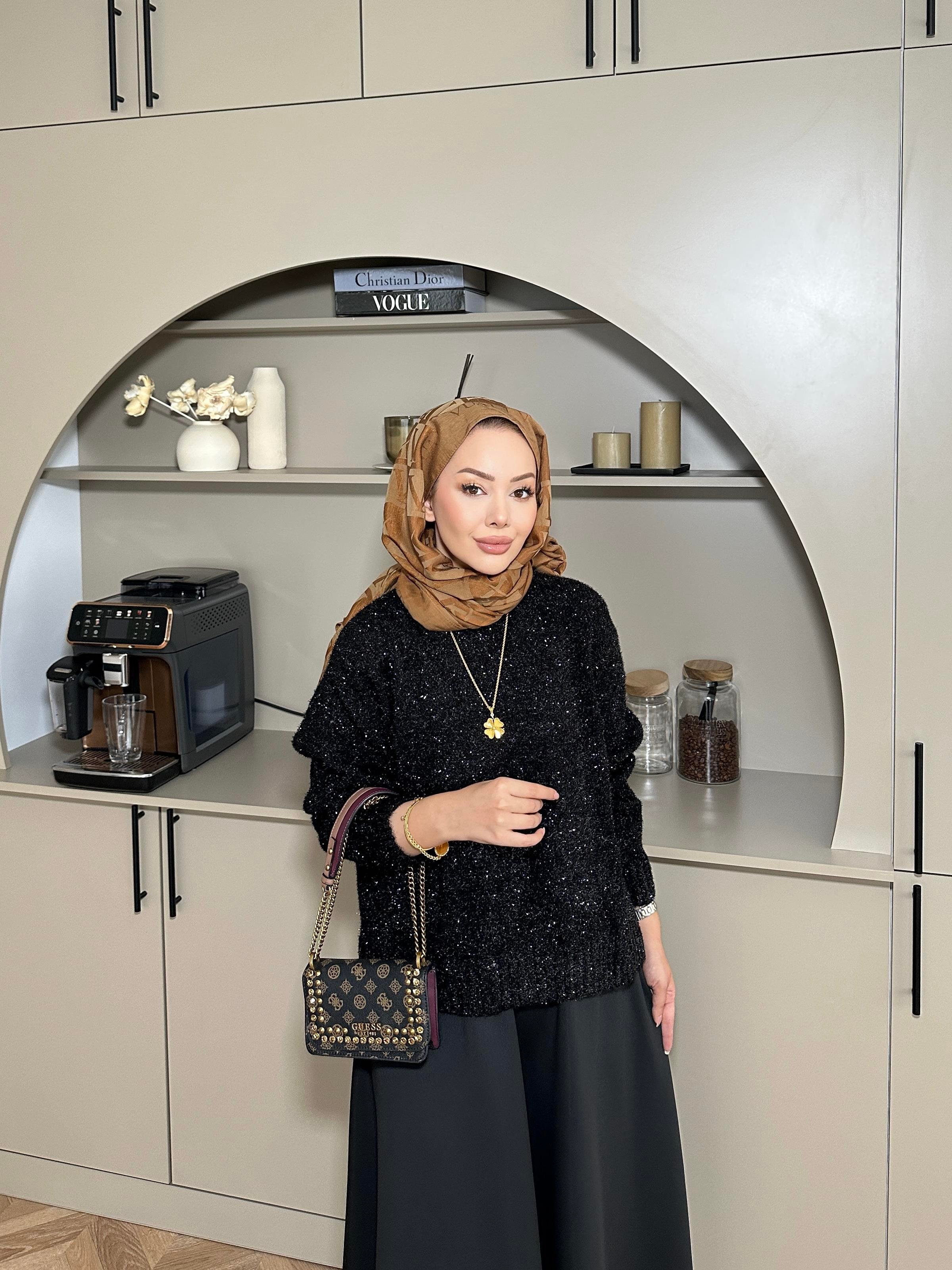 Simli Kısa Kazak Siyah