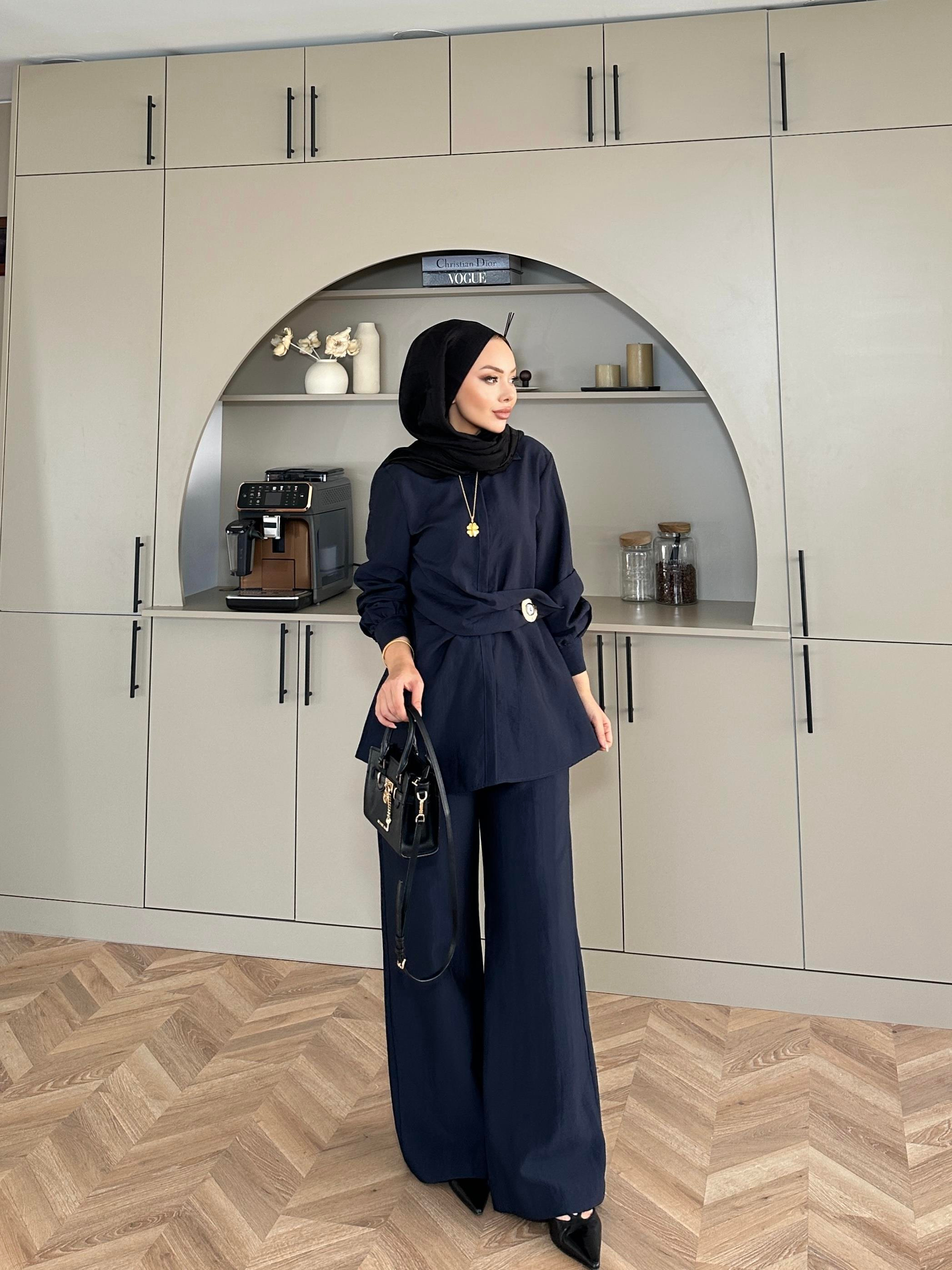 Sole Pantolonlu Takım Vizon Sole Pantolonlu Takım Mürdüm Sole Pantolonlu Takım Acı Kahve Sole Pantolonlu Takım Petrol