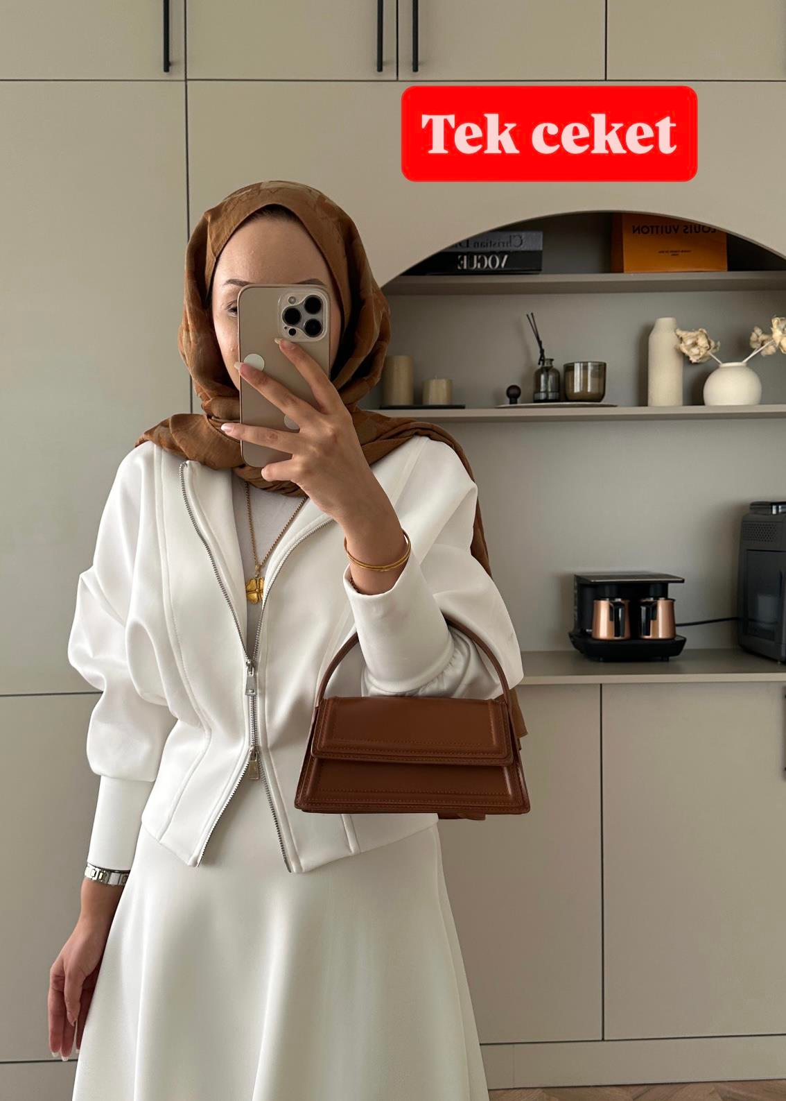 (ÖNSİPARİŞ) 10 İŞ GÜNÜ SONRA KARGOLANACAKTIR Fermuarlı Scuba Ceket Beyaz