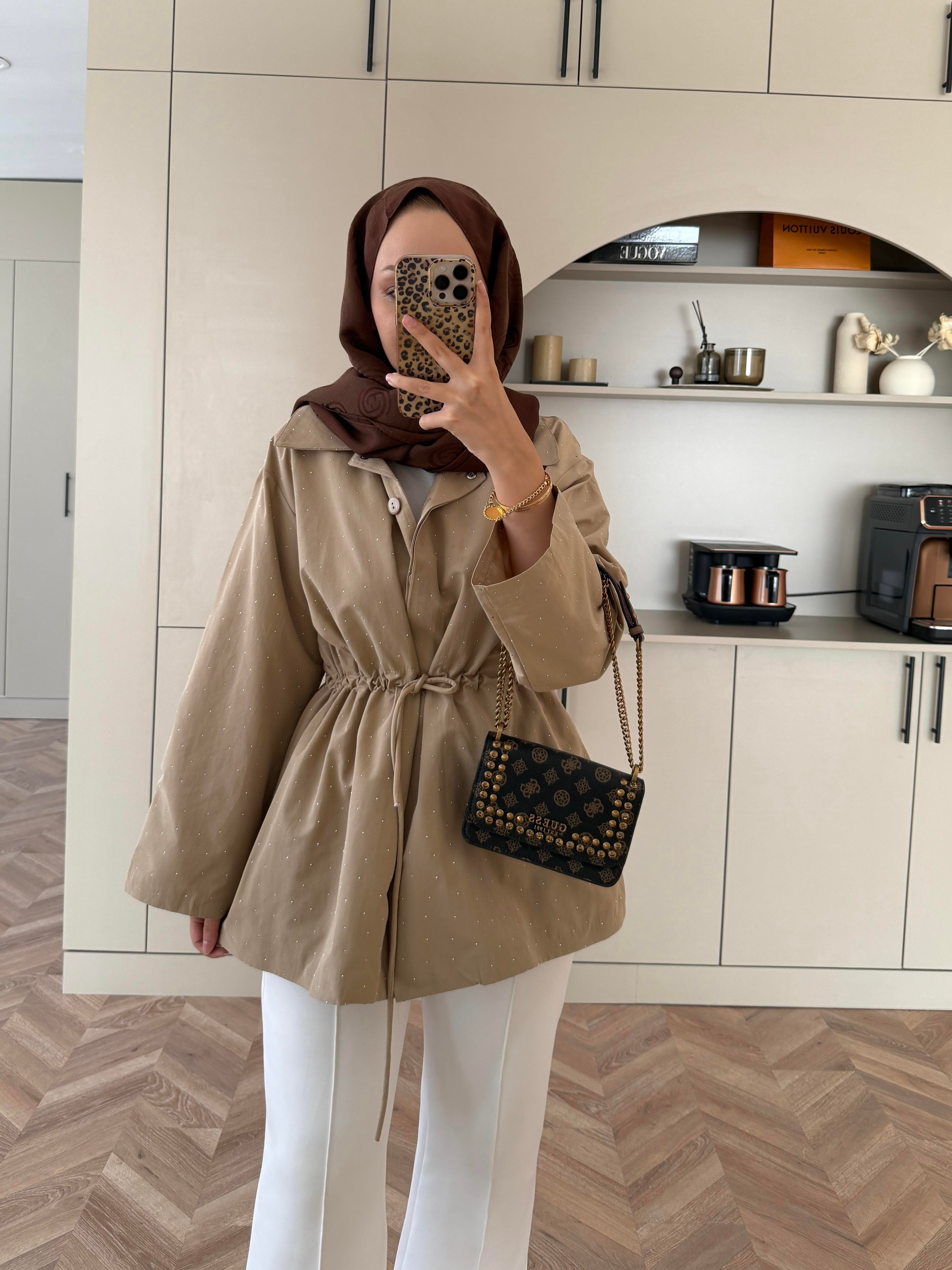 Trenç kumaştır  - Belden büzgülü ayarlanabilir - Düğmelidir
