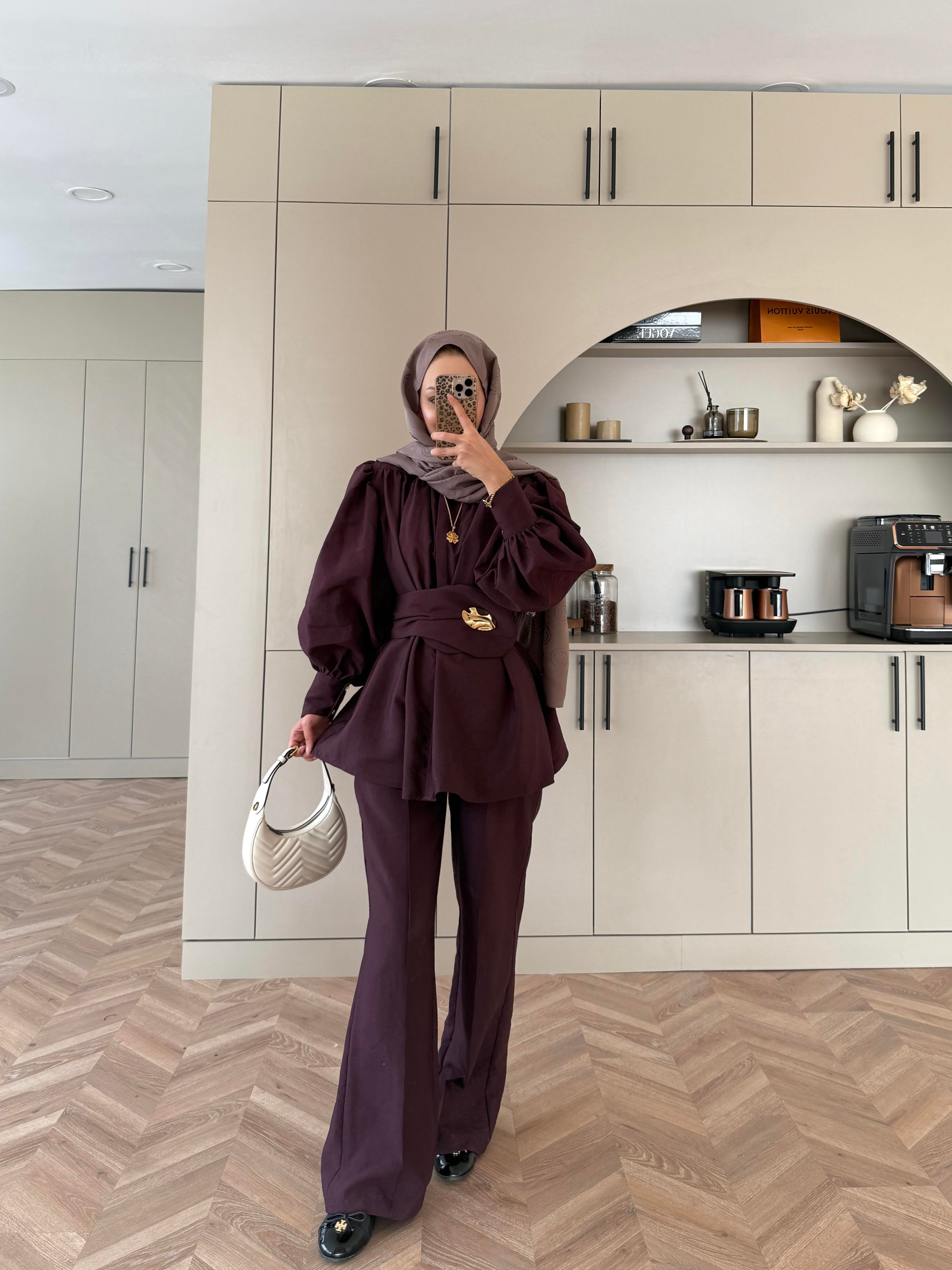Cupra kumaştır - Pantolon beli arkadan lastiklidir - Broş hediyelidir - Önden düğmelidir