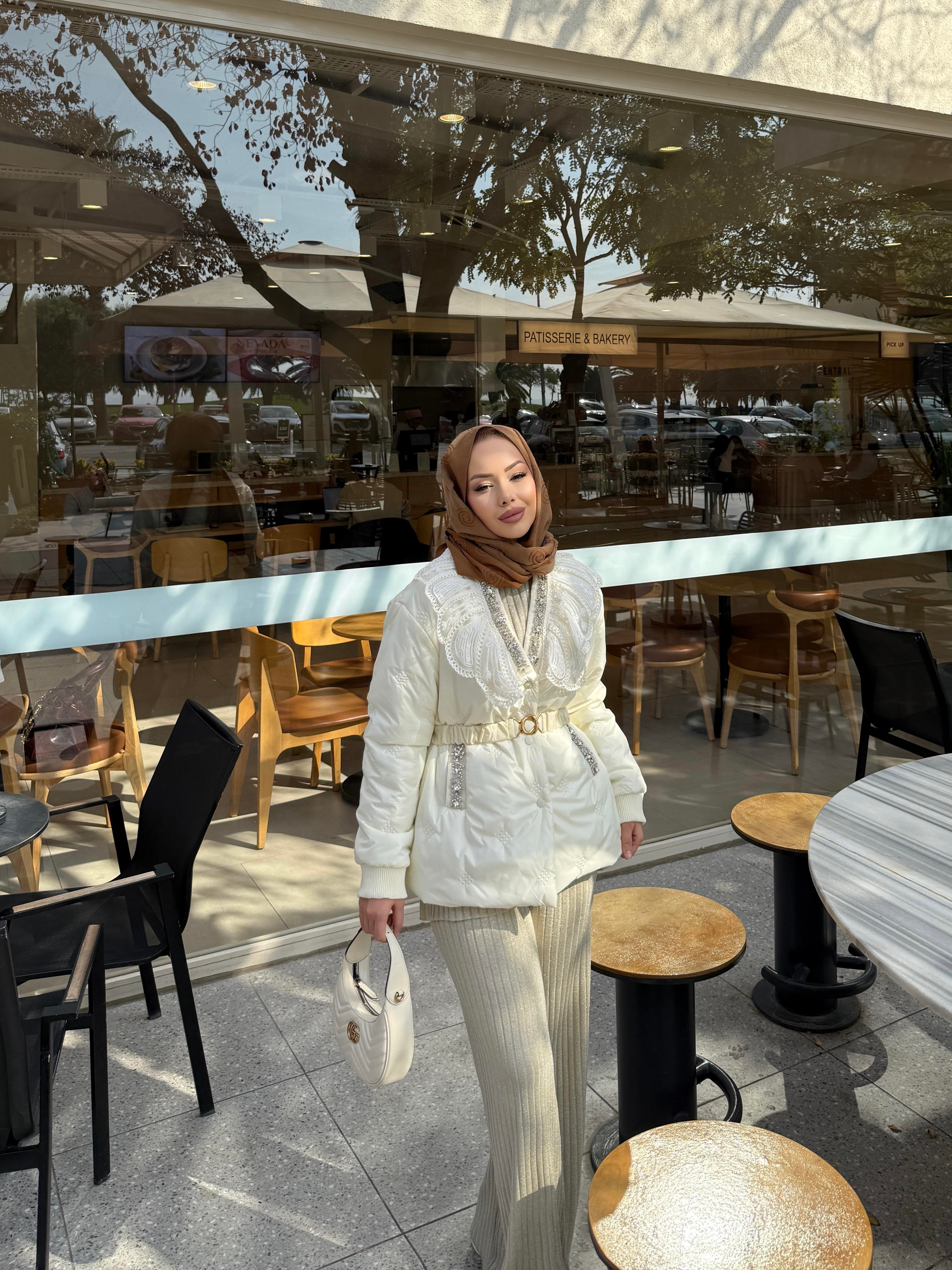 Kapitone kumaştır - seyyar kemerlidir - astarlıdır - çıtçıtlıdır