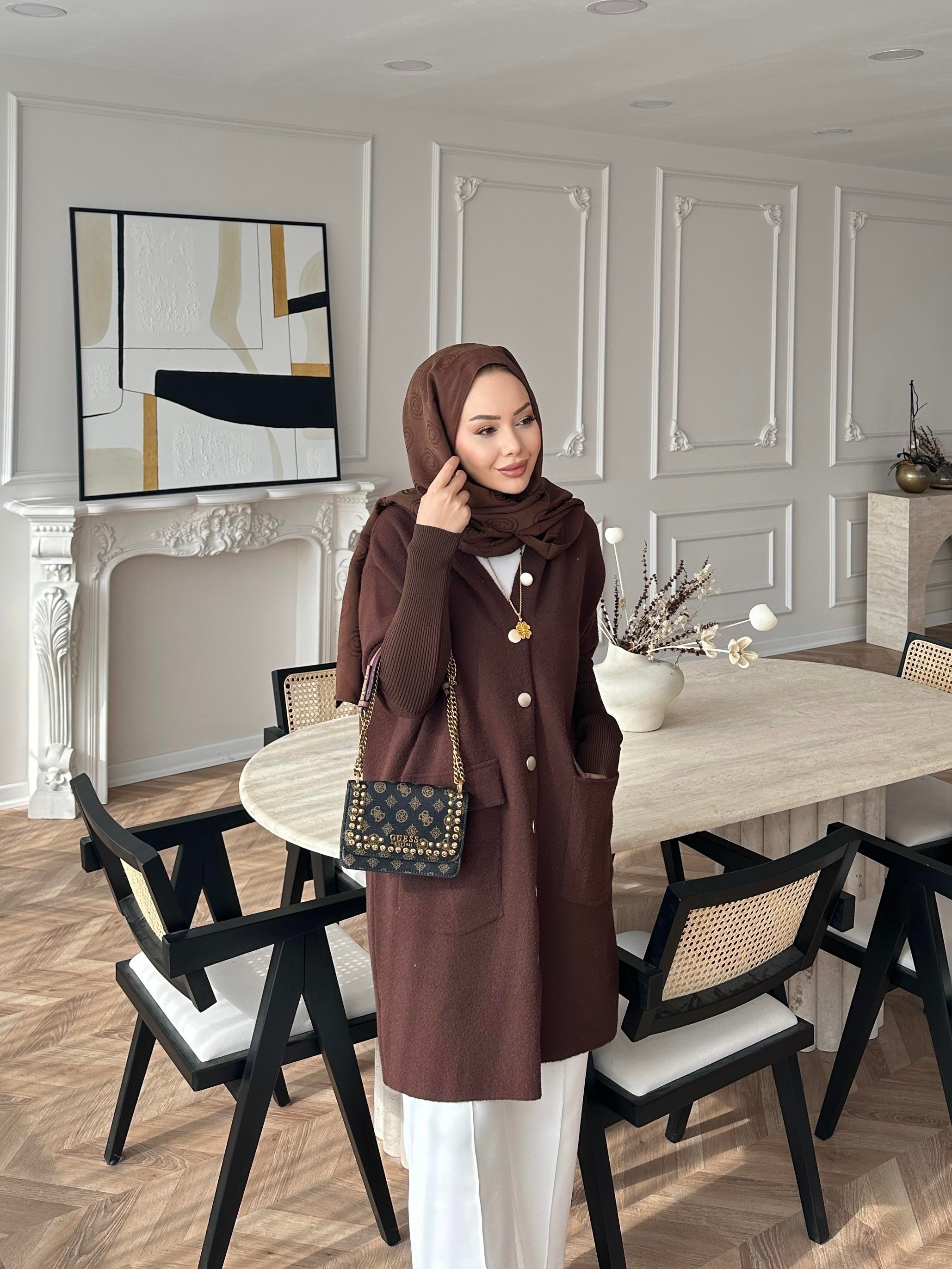 Erica Angora Uzun Hırka Kahverengi