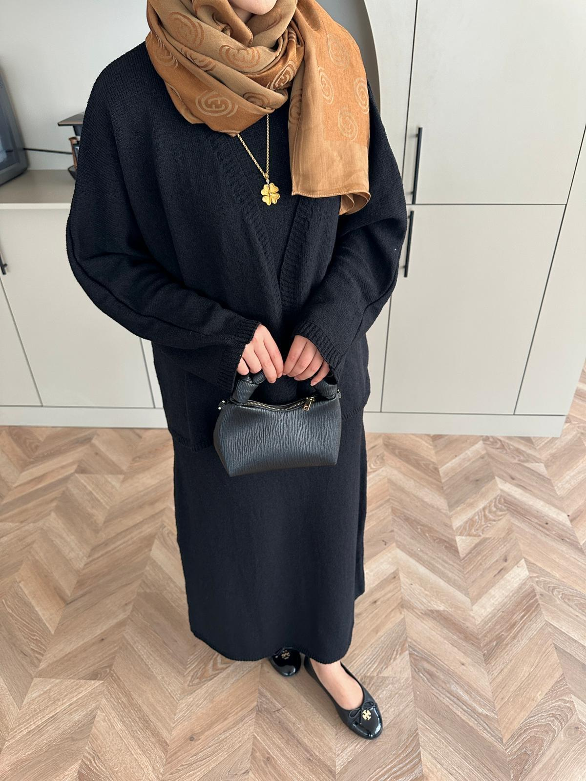 Hırkalı Triko Elbise Siyah