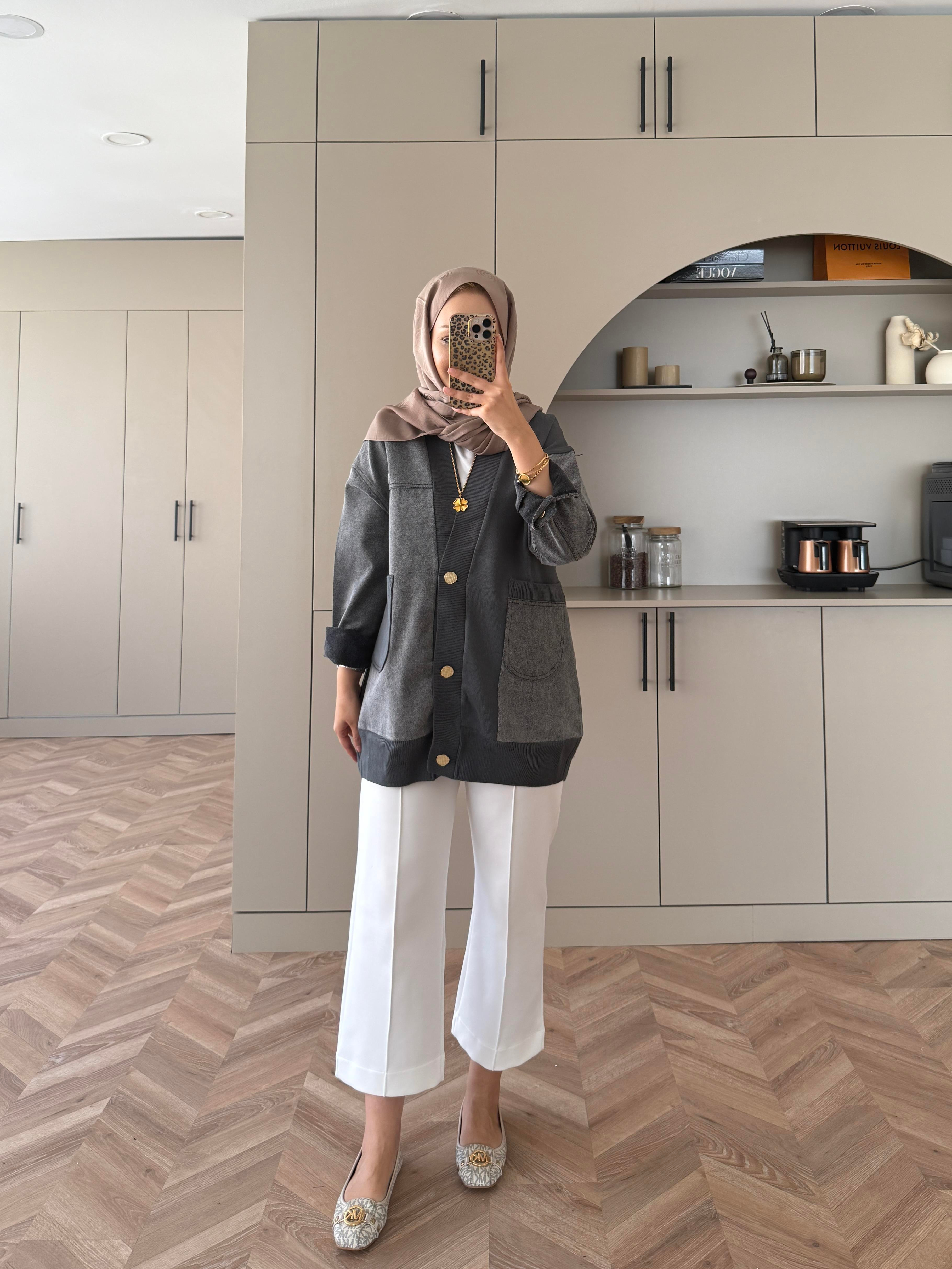 Kontrast Kot Detaylı Hırka Siyah Kontrast Kot Detaylı Hırka Ekru Kontrast Kot Detaylı Hırka Yeşil