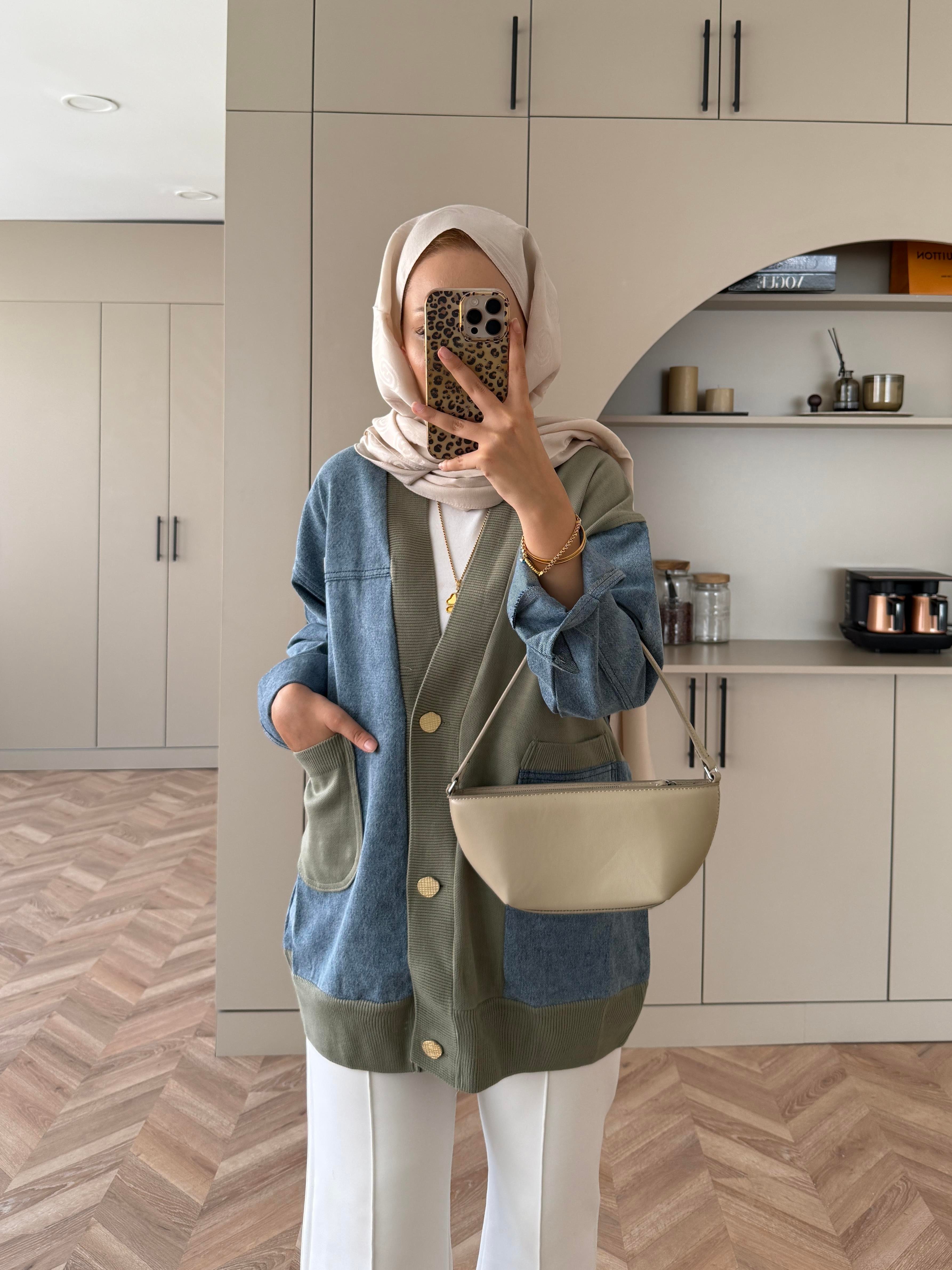 Kontrast Kot Detaylı Hırka Füme Kontrast Kot Detaylı Hırka Siyah Kontrast Kot Detaylı Hırka Ekru
