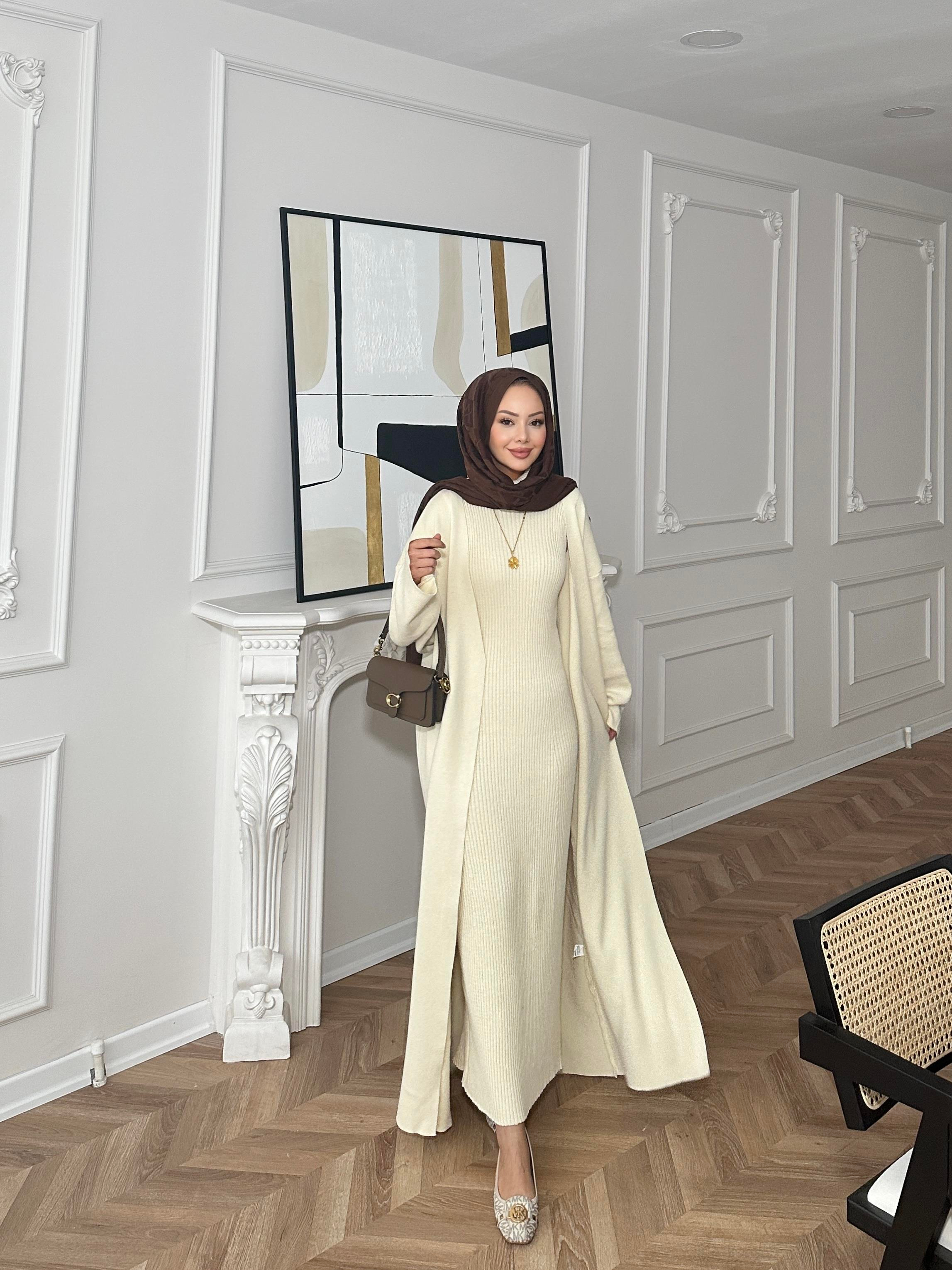 İç Elbiseli Kimono Triko Takım Vanilya Bej