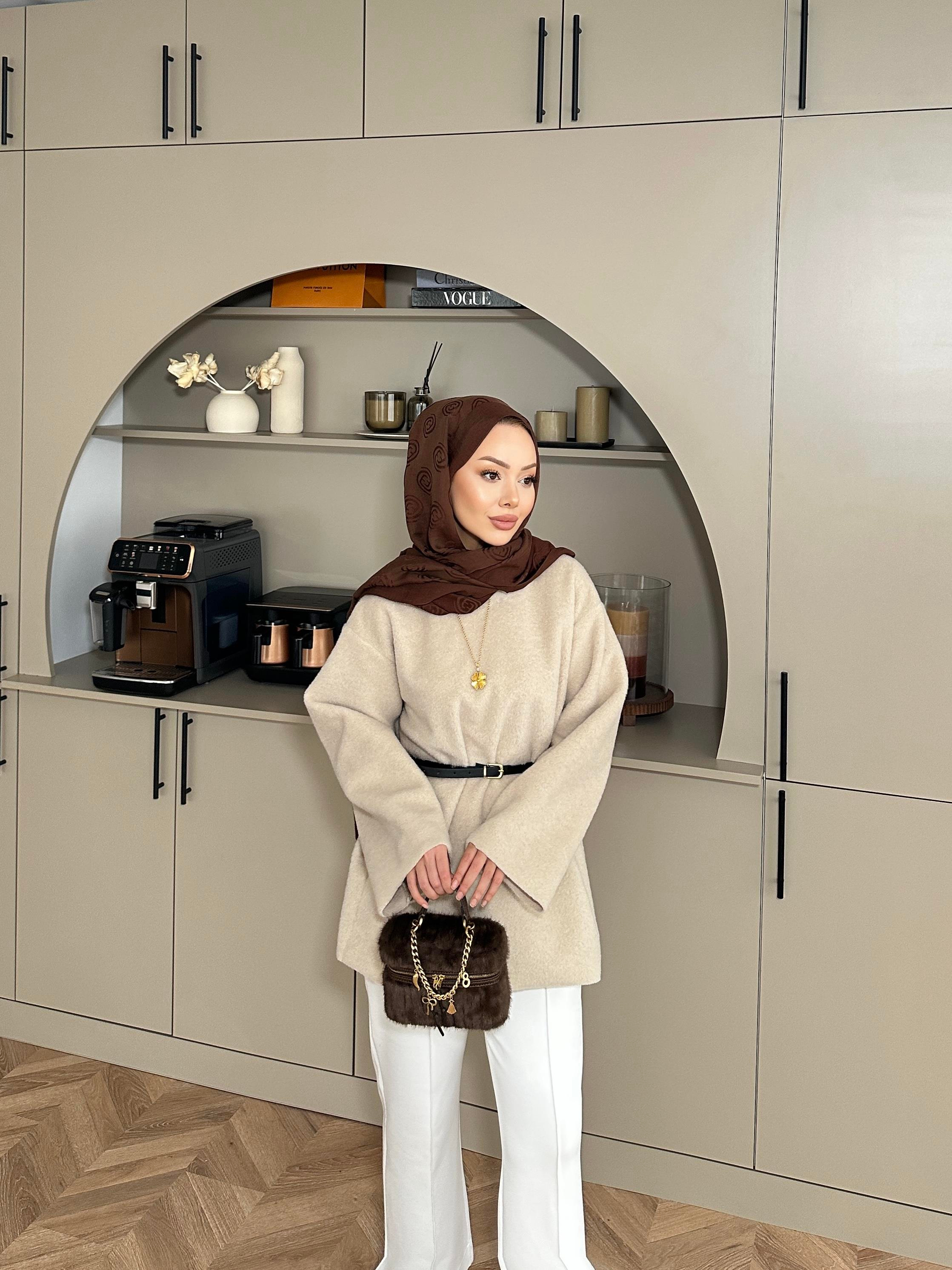 Yün kaşe karışımı yumuşak dokuludur - Arkadan fermuar detaylıdır - Kemer dahildir