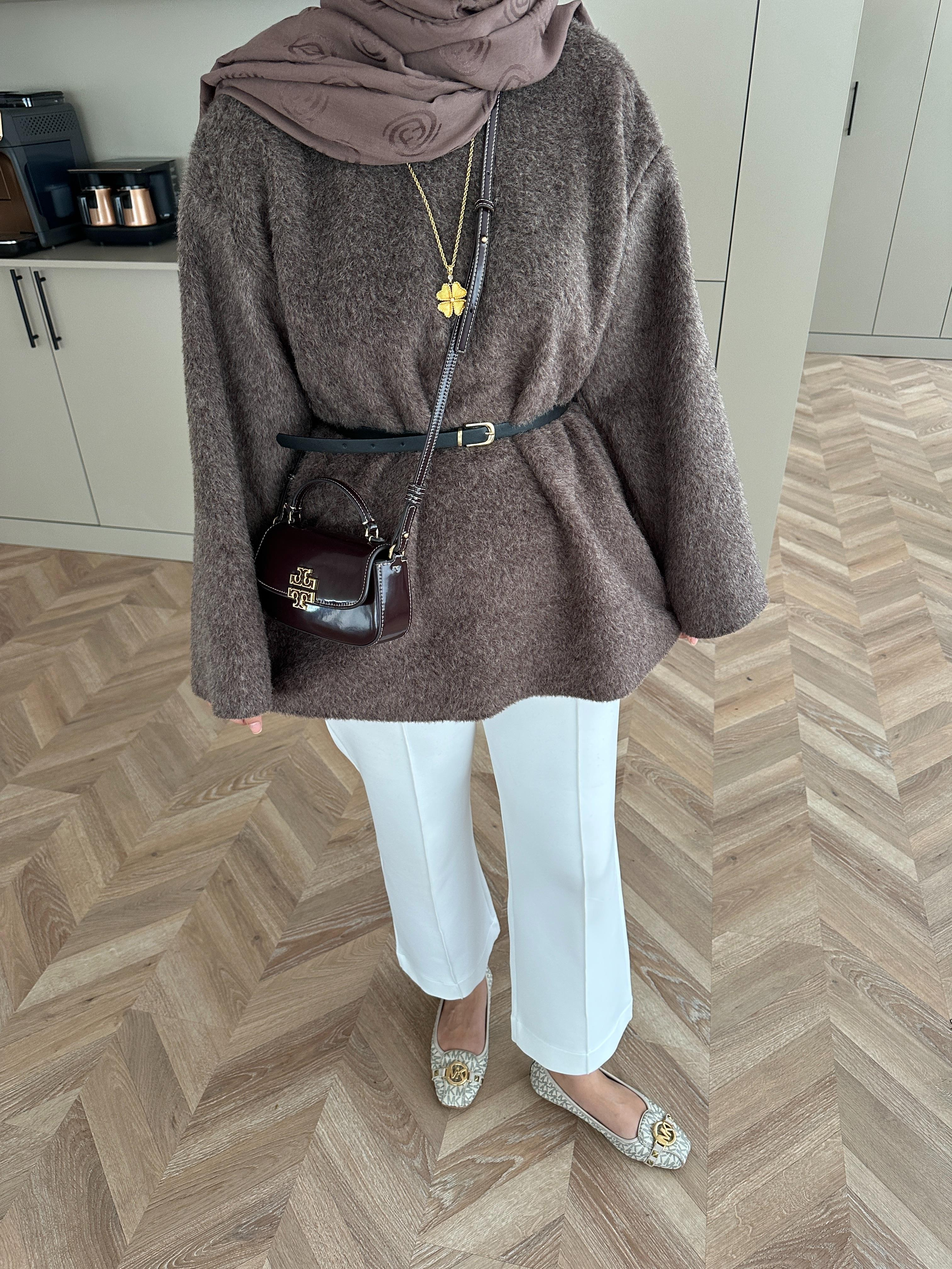 Yün kaşe karışımı yumuşak dokuludur - Arkadan fermuar detaylıdır - Kemer dahildir