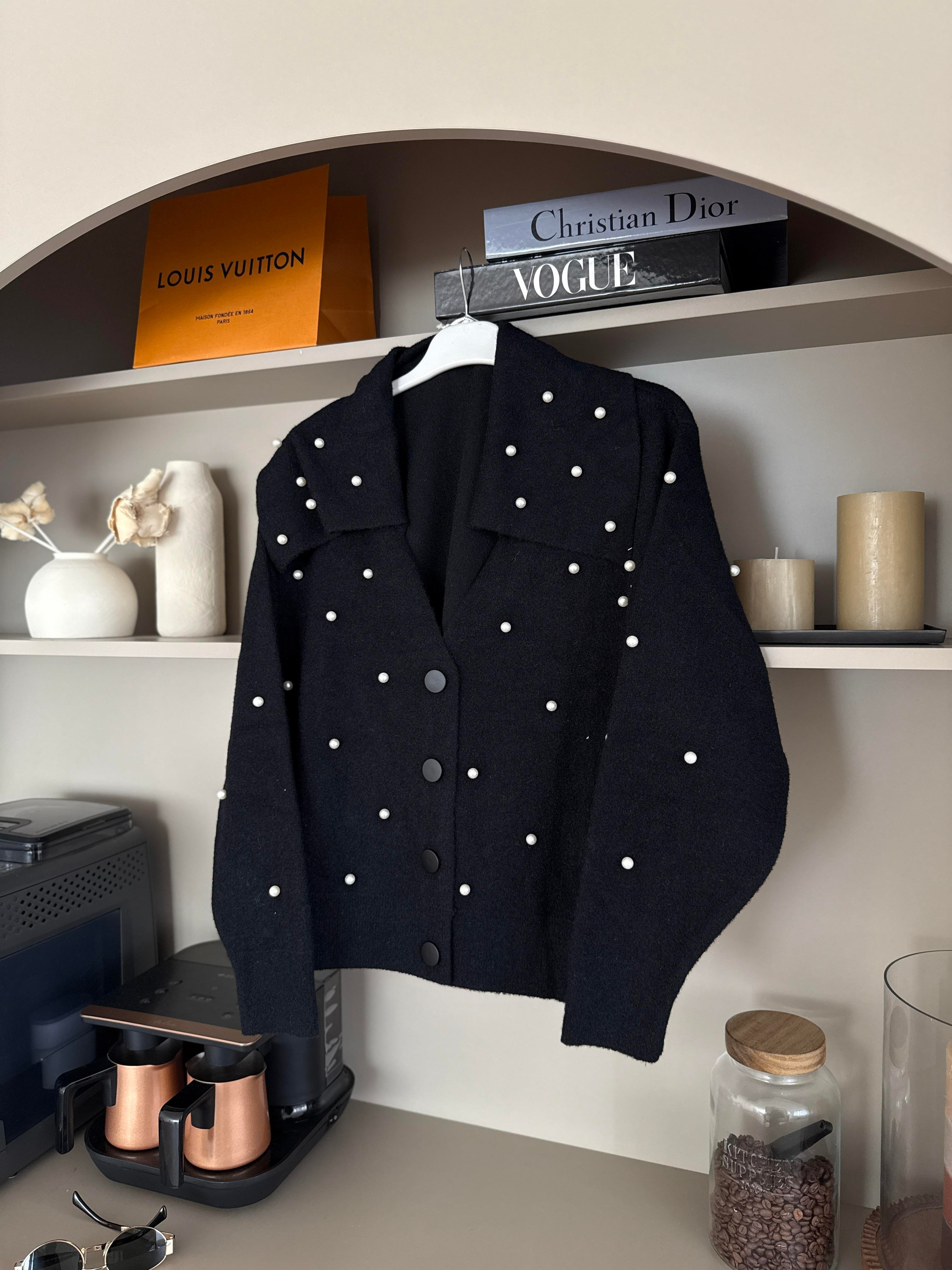 İncili Angora Hırka Siyah