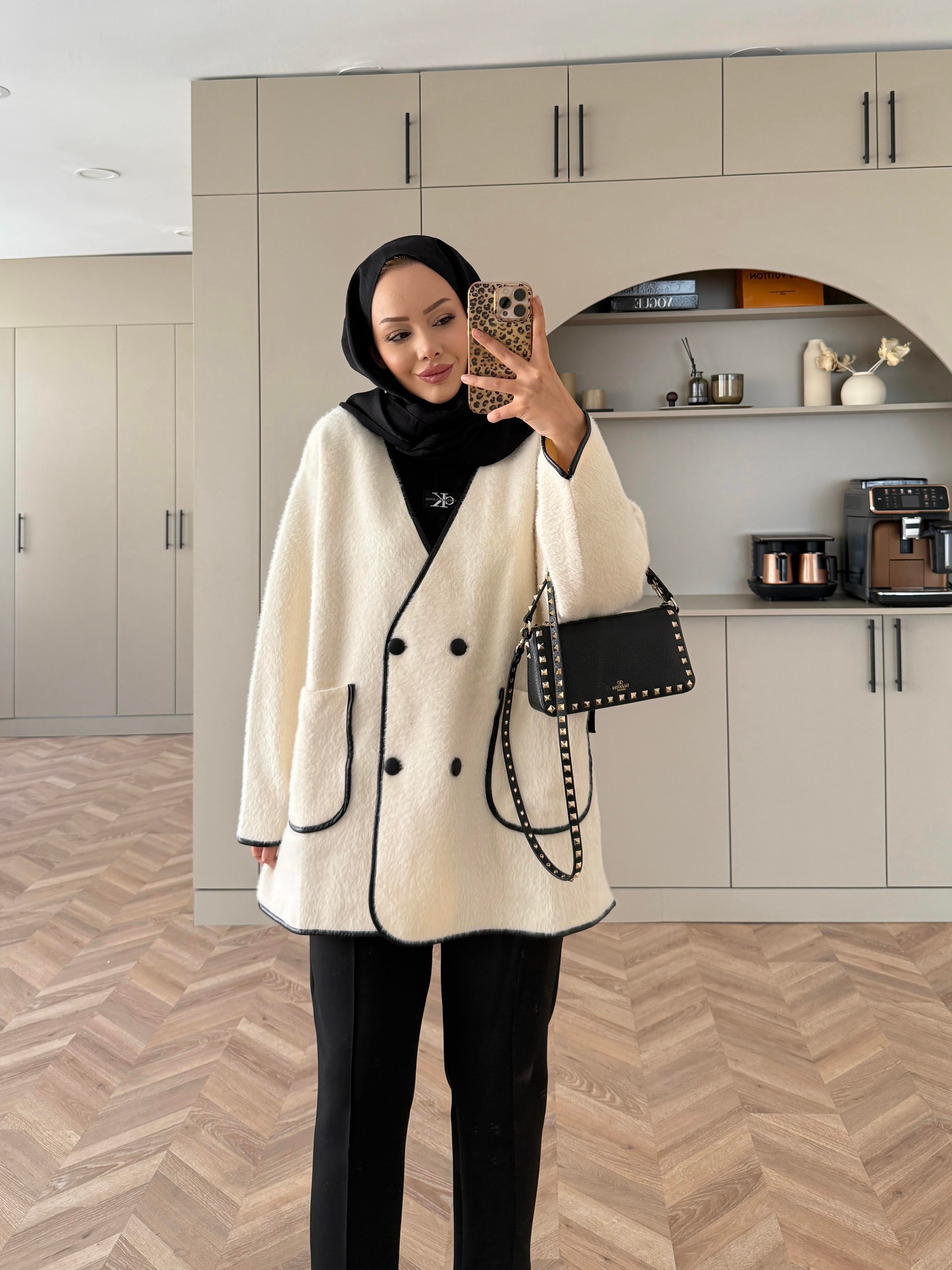 Keira Angora Biyeli Hırka/Ceket Ekru