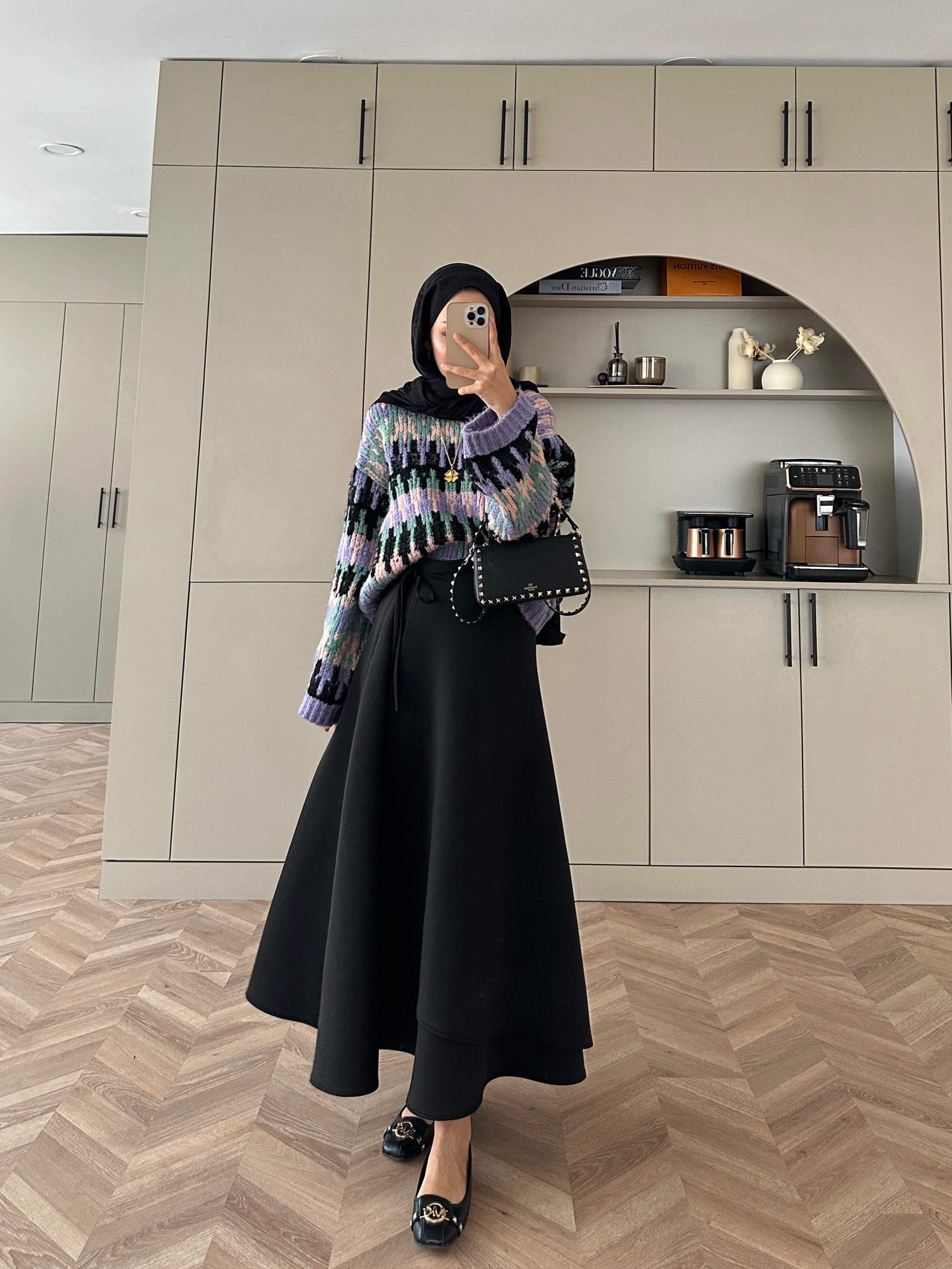(ÖNSİPARİŞ 7 iş gün sonra kargolanacaktır) Yandan Bağlamalı Scuba Etek Siyah