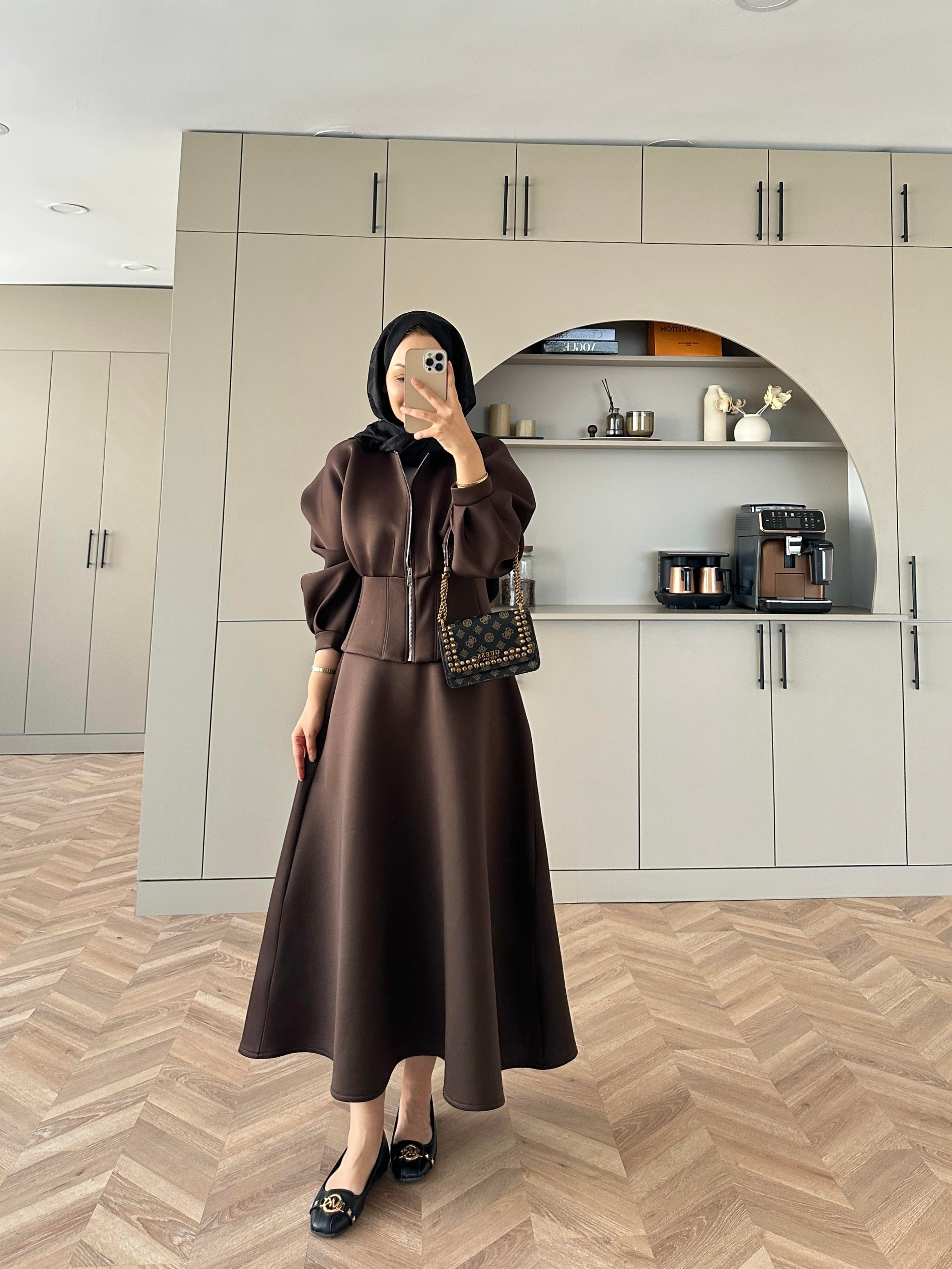 Scuba kumaştır - Fermuarlıdır - Etek beli lastiklidir