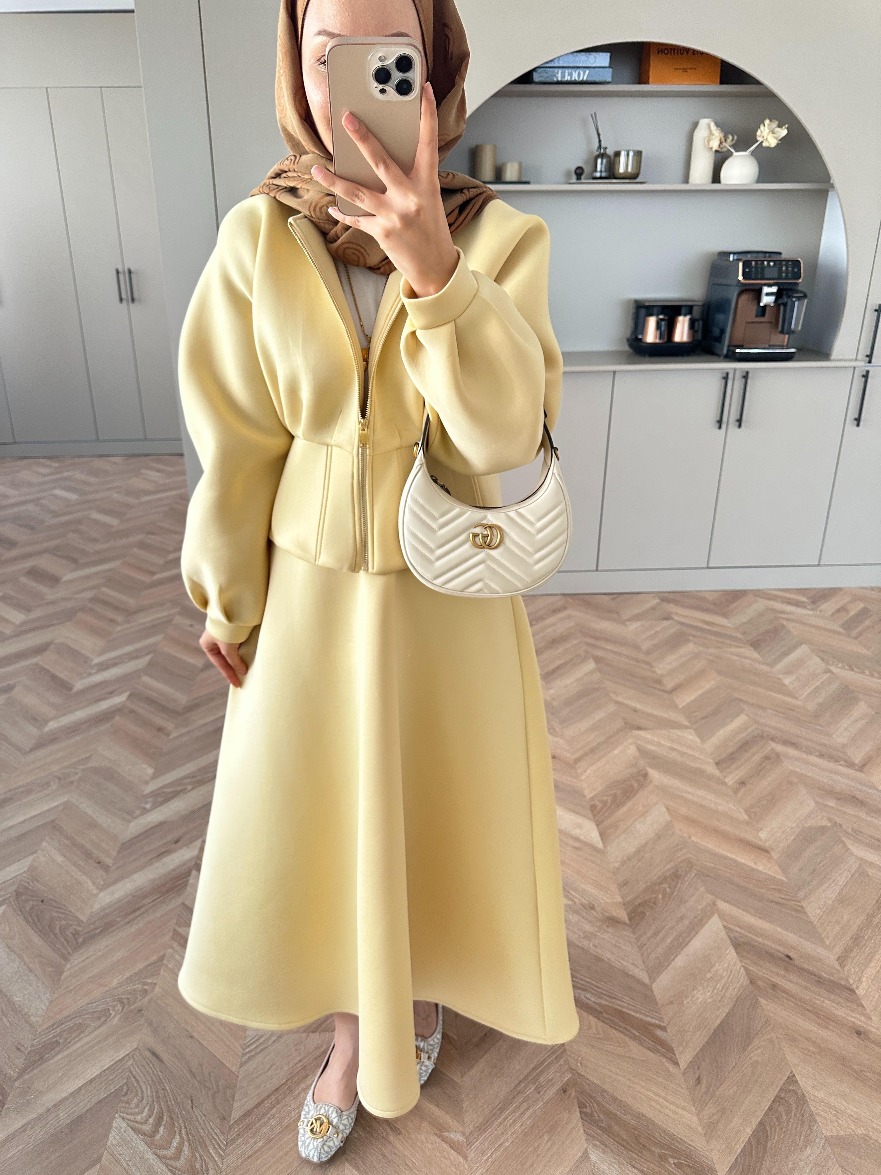 Scuba kumaştır - Fermuarlıdır - Etek beli lastiklidir