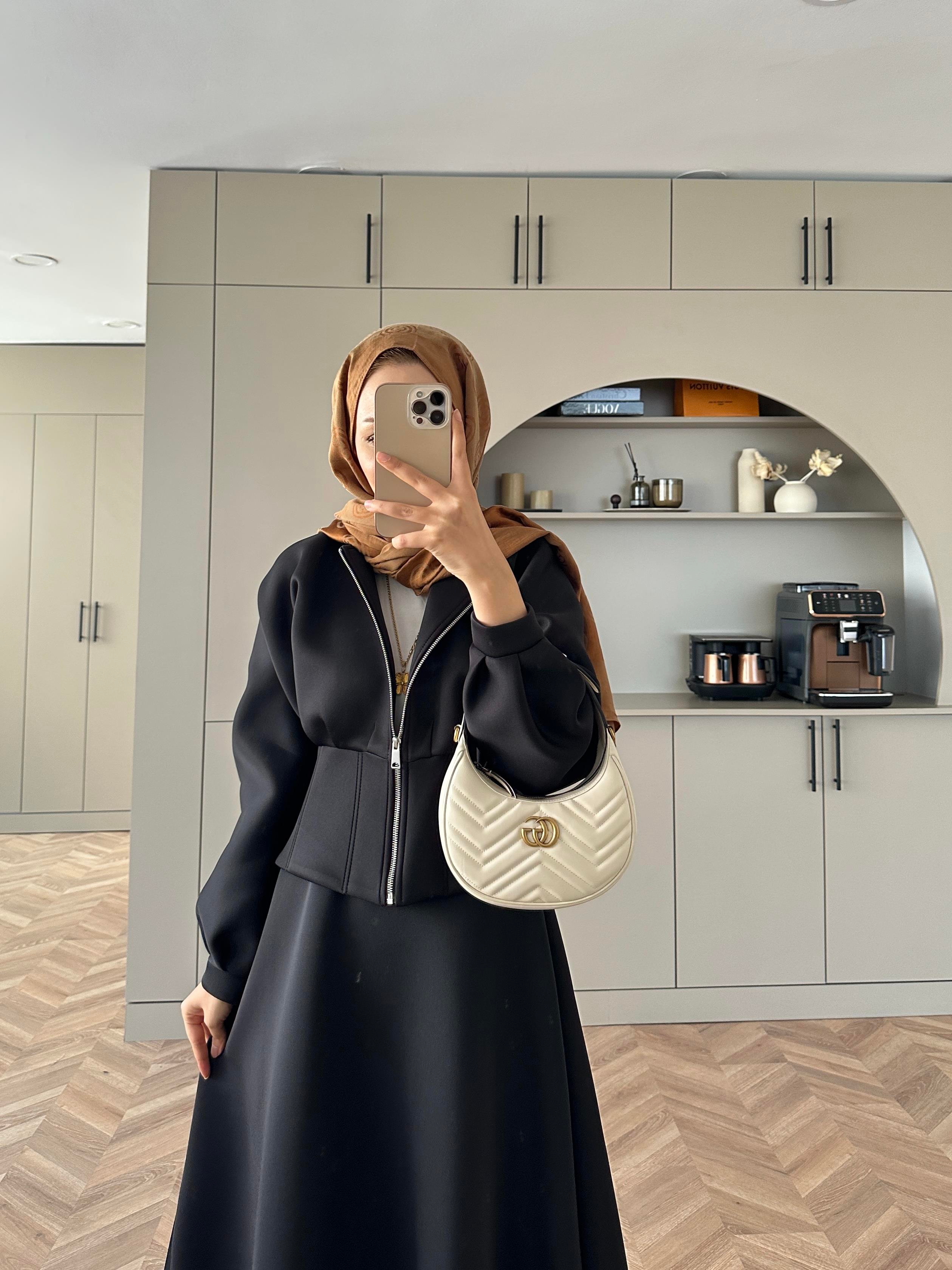 Scuba kumaştır - Fermuarlıdır - Etek beli lastiklidir