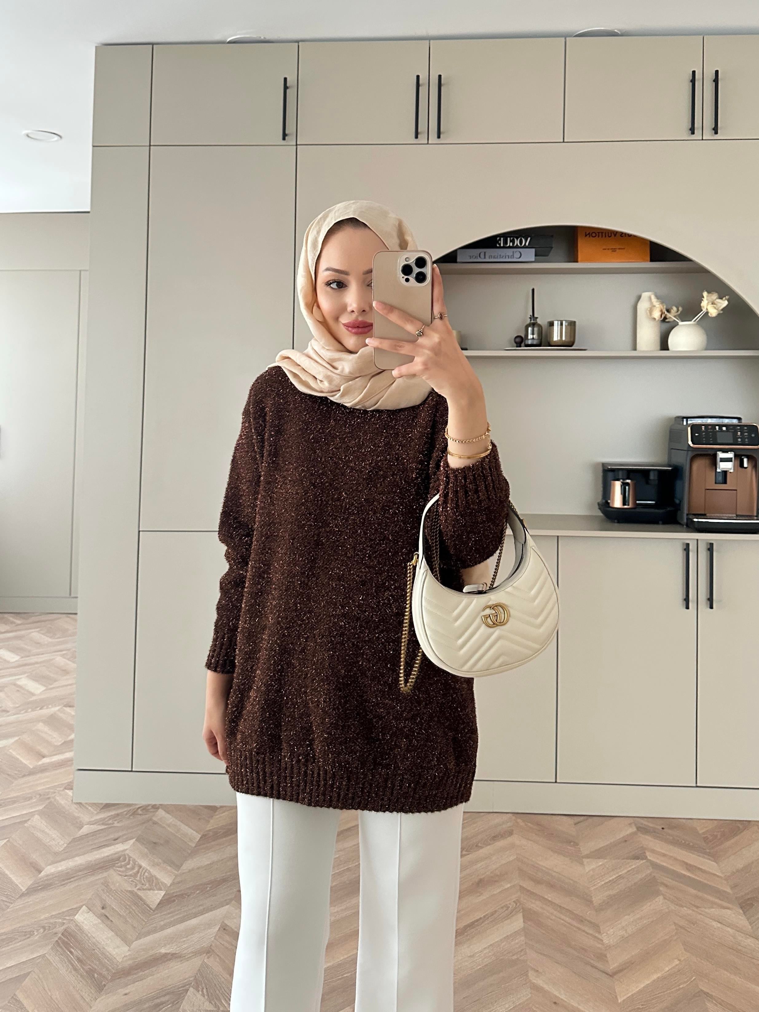 Simli Kazak Kırmızı Simli Kısa Kazak Gold Simli Kısa Kazak Kırmızı Simli Kısa Kazak Gri
