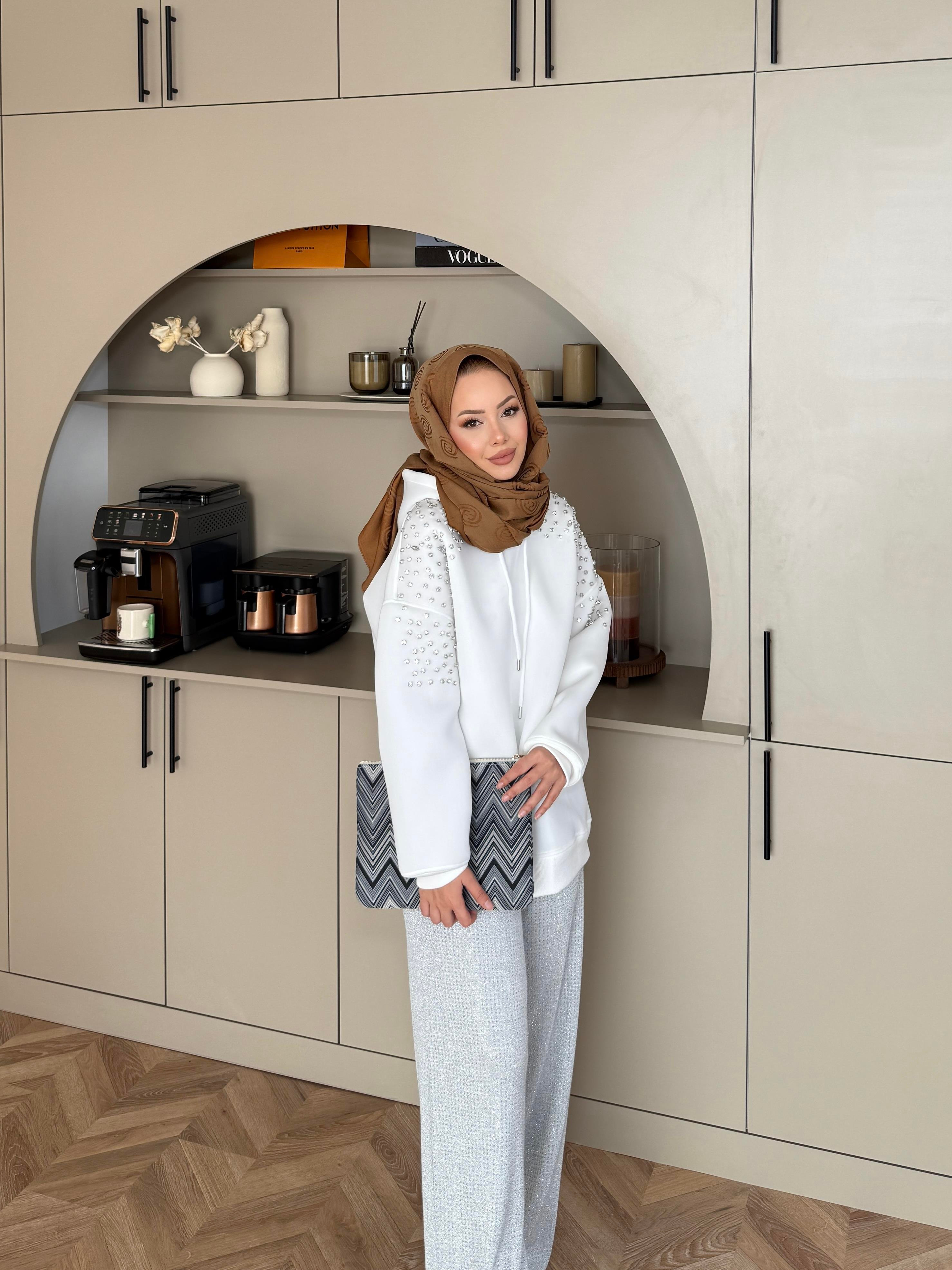 Scuba kumaştır - kapüşonludur - taşları çakılıdır