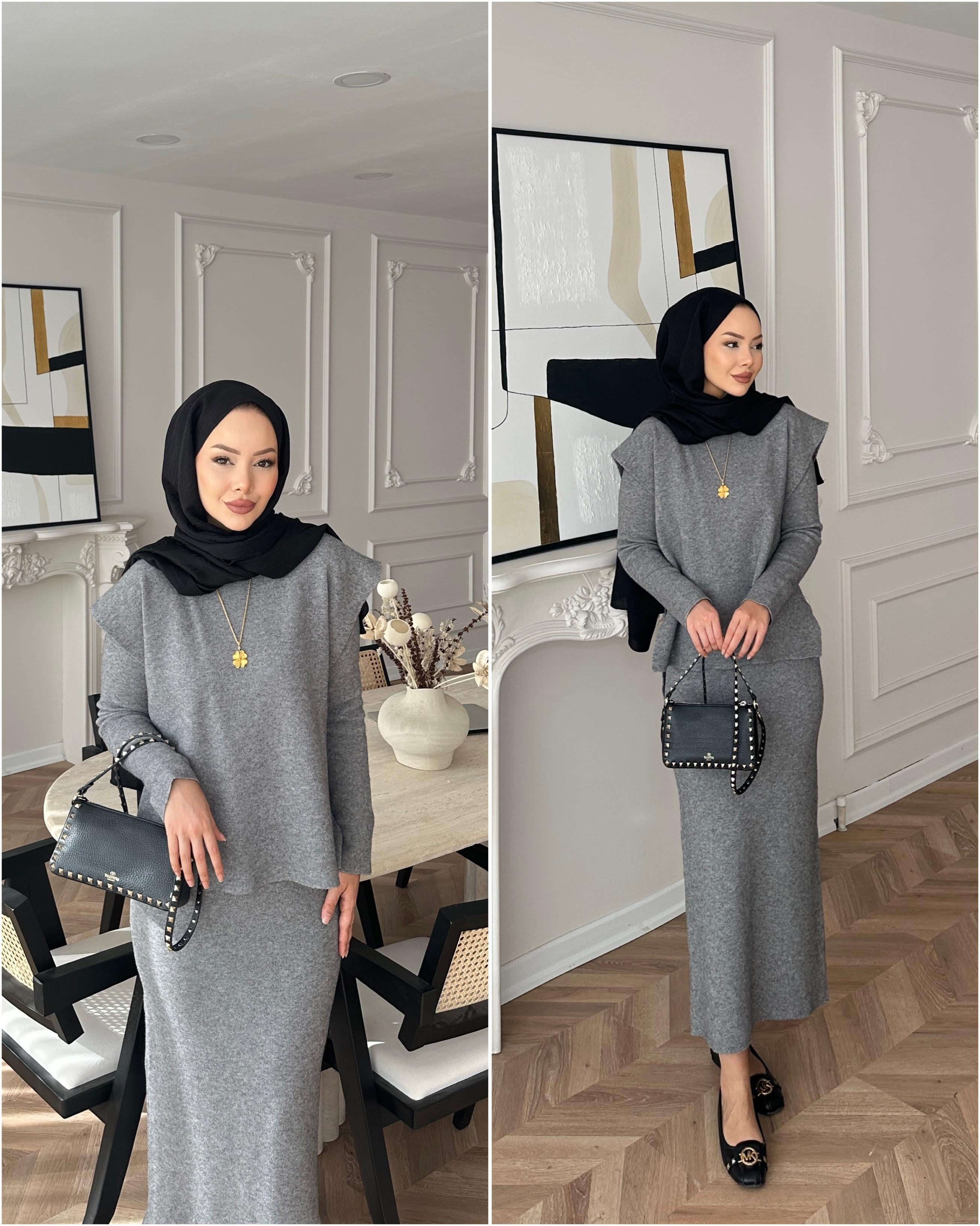 Vally Triko Yelekli Elbise Gri